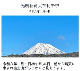 令和八年二月一日(2026年2月1日)、光明稲荷神社におきまして、初午祭を厳粛に斎行いたしました。