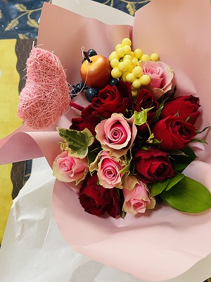 イナリダイジと私に、そして大久保様からは美しいバラの花束をお贈りいただきました。