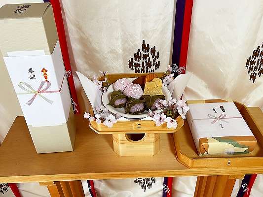 あわせて、桜餅や苺大福といった春らしい和菓子もお供えいたしました。